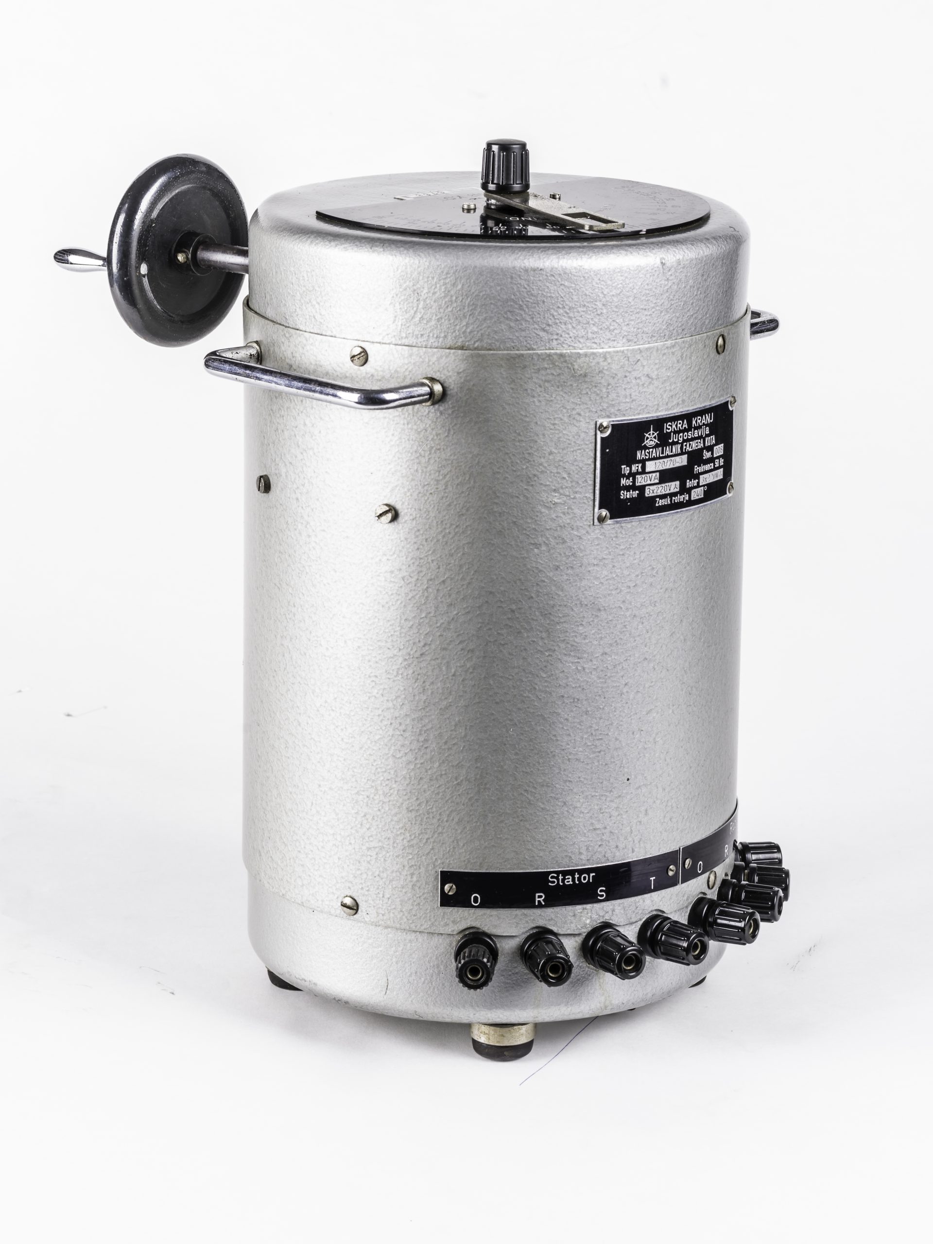 Naprava za spreminjanje faznega kota se uporablja v tehniki izmeničnih električnih tokov. Kapacitivna in induktivna bremena povzročijo zamik med napetostjo in tokom, ki ga je predvsem pri trifaznih sistemih potrebno uravnavati. Naprava je bila izdelana v tovarni Iskra Kranj.