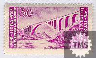 Primorska znamka, motiv - Solkanski most, vrednost 30. V uporabi v coni B od leta 1945 (izšla v dveh nakladah: Zagrebški in Ljubljanski, dobila je več pretiskov. Filatelistična zbirka Slovenika.