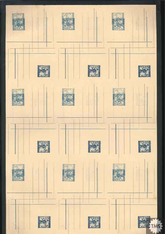 Tiskarska pola 3 x 3 = 9 dopisnic iz makulature (izvod z napako) (najmanj trojni pretisk). Verjetno gre za odtis, ki je nastal med zagonom stroja na začetku tiska. Te dopisnice so bile tiskane leta 1920.